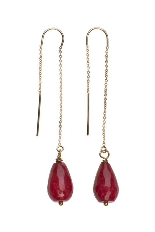 OverzichtElegante goldfilled oorbel met daaraan een steen van geverfde ,facetgeslepen jade.