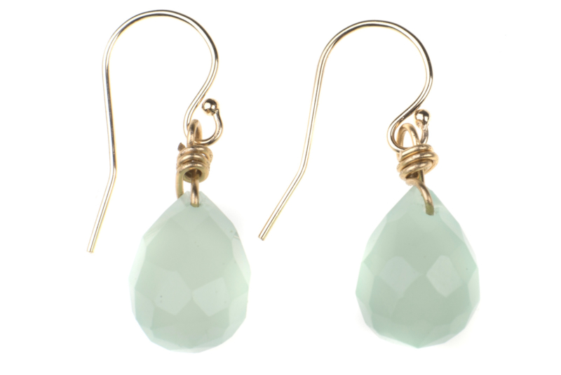 Elegante goldfilled oorbel met daaraan een steen van geverfde ,facetgeslepen jade.