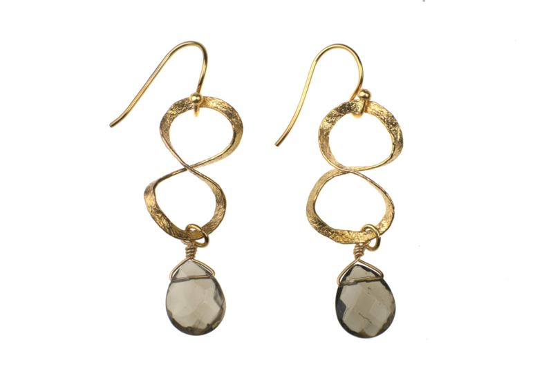 Echt even iets anders deze vergulde oorbellen met een prachtige.druppelvormige smokey Quartz steen.