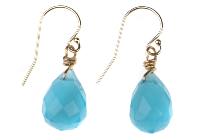 Mooie diep turqoise Quartz steen aan een goldfilled haakje.